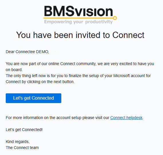 You just received your personal invite to join Connect and clicked the more information link. The Connect administrator added you as a user to Connect.