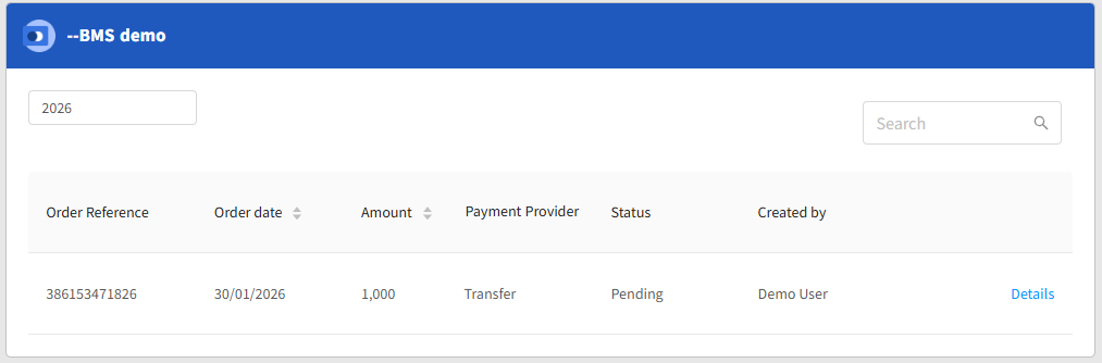 Click Details to see the Payment details of the order and to download the invoice.