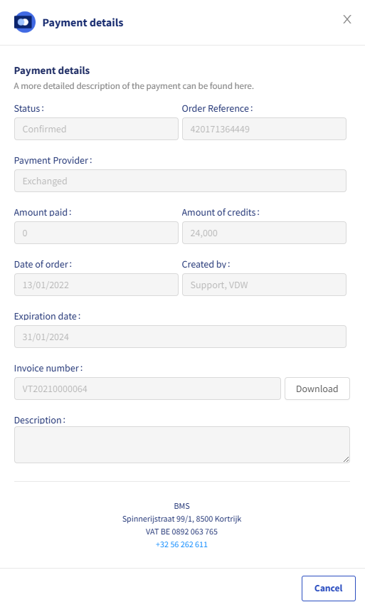 - An invoice will be generated the next day. Pay the indicated amount though wire transfer. You will receive your credits once we have received the payment. This may take a couple of days.