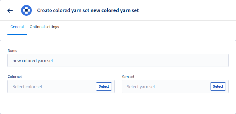 - In the Optional settings tab, you can add the Technical code of the colored yarn set.